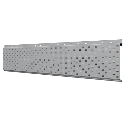 Линеарная потолочно-стеновая панель с ПЕРФОРАЦИЕЙ для вентиляции цвет RAL7004 Серый применяется в качестве софитов для подшивы крыши, наружной и внутренней отделки потолков, стен, фронтонов фасада дома в Саратове.