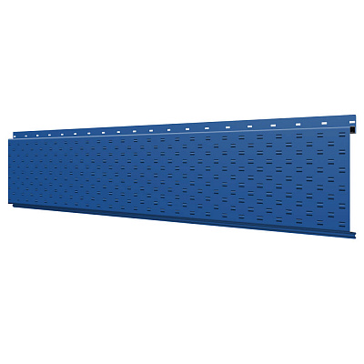 Линеарная потолочно-стеновая панель с ПЕРФОРАЦИЕЙ для вентиляции цвет RAL5005 Синий Сигнал применяется в качестве софитов для подшивы крыши, наружной и внутренней отделки потолков, стен, фронтонов фасада дома в Саратове.