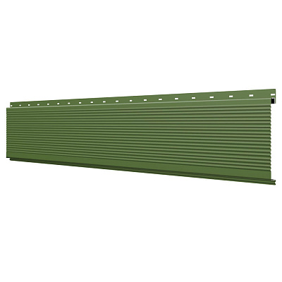 Линеарная потолочно-стеновая панель РИФЛЕНАЯ усиленная цвет RAL6002 Зеленый Лист применяется в качестве софитов для подшивы крыши, наружной и внутренней отделки потолков, стен, фронтонов фасада дома в Саратове.