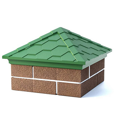 Колпак заборный на столб 385х385х190мм Черепица Зеленый полимерно-песчаный