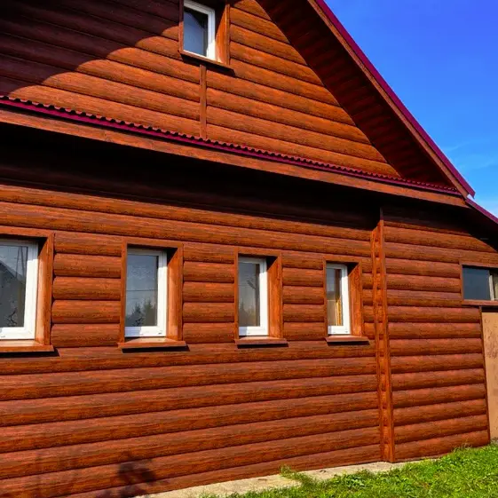 Фасад из металлосайдинга Бревно Рубленое 4D Темный Дуб Принтек в Саратове