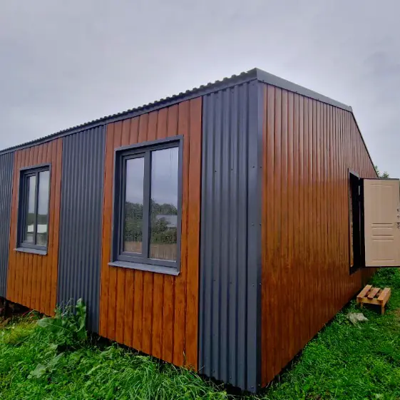 Сайдинг металлический ЕВРО-БРУС под брус дерево Кедр 3D Темный SteelArt фото Центр Металлокровли Фото сайдинга металлического (металлосайдинга) Евро-Брус под брус SteelArt под дерево Кедр Темный для фасада дома
