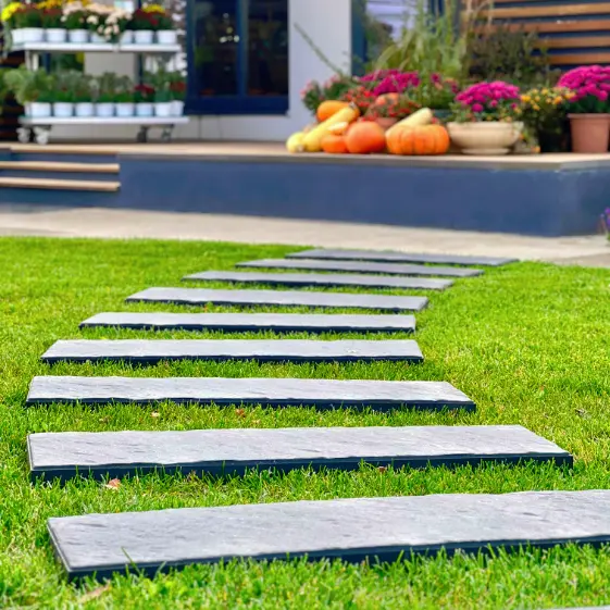 Шаговые плиты для придомовой зоны и садовых дорожек, Шаговая плита Stone Графитовый Серый в ландшафтном дизайне, Пошаговая плита Stone Графитовый Серый на садовом участке